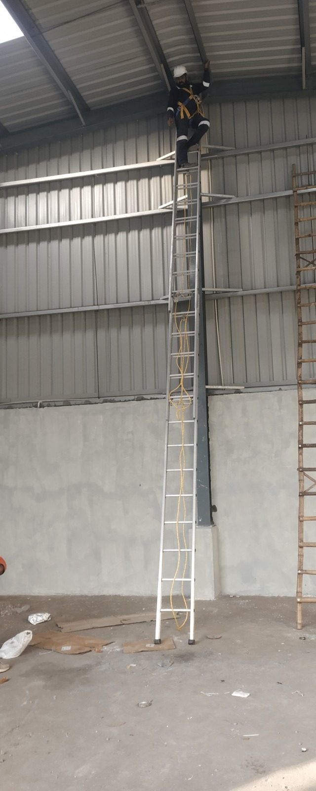 #AMITQUALITYPRODUCTCOMPANY #AluminiumExtensionLadder 1. Material The ladder will be manufactured from high-strength Aluminium Alloy (6063-T6 / 6061-T6 grade) . The material should be corrosion resistant and lightweight. 2. Type Two Section Extension Type Ladder Extendable and retractable through Rope & Pulley mechanism. 3. Height Closed Height: Approx. 3–4 meters Extended Height: Approx. 6–8 meters (requirement के अनुसार) 4. Load Capacity Minimum 150 kg safe working load। 5. Rungs (Steps) Rungs shall be of anti-slip serrated design. Rung spacing: 280–300 mm। Rungs must be firmly fixed or hydraulically pressed into the ladder frame. 6. Side Rails Heavy duty aluminium rectangular section side rails। Thickness: Minimum 2.5–3 mm। 7. Safety Features Non-slip rubber shoes / PVC foot caps। Strong locking hooks / rung locks for safety। Nylon / polypropylene rope for extension system। Pulley heavy duty aluminium या stainless steel। 8. Surface Finish Ladder natural aluminium finish या anodized / anti-corrosion finishIn 9. They are Ladder IS 3696 (Part 2)Come 10. In Approx. 12–20 kg(size क 11. Application Maintenance work Electrical work Industrial / warehouse use Building maintenance 12. Warranty Minimum 12 months manufacturer warranty